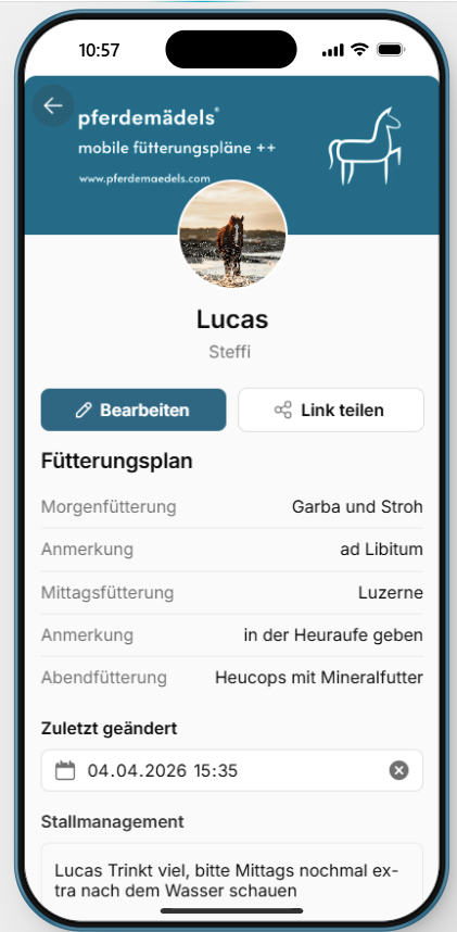 Die Pferdemädels mobile Fütterungspläne ++ sind jederzeit editierbar. Auch am PC.