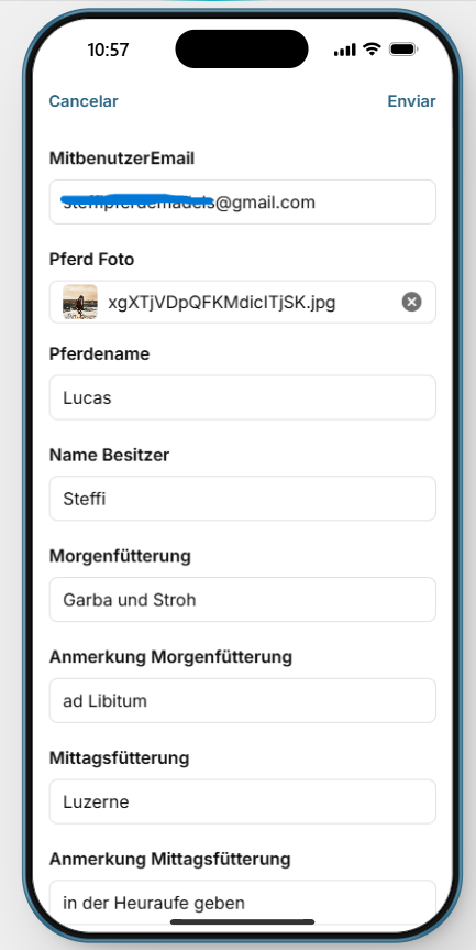Wenn du die Mitbenutzer E-Mail ausfüllst, erhält der Inhaber dieser E-Mail-Adresse Zugriff auf diesen Futterplan über die App.